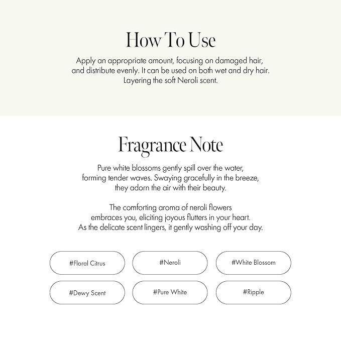 - Soft Shine & Daily Protection – Vitamin-rich Neroli Oil works alongside antioxidants to protect and hydrate while restoring natural bounce and gloss. Ideal for smoothing frizz, split ends, and dullness with a radiant finish.