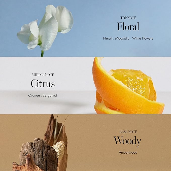 - Delicate Citrus Floral Fragrance – Neroli, Magnolia, White Blossoms, and Amberwood combine in a subtle, uplifting scent that soothes your senses. A clean, floral-citrus trail that lasts without being overpowering.