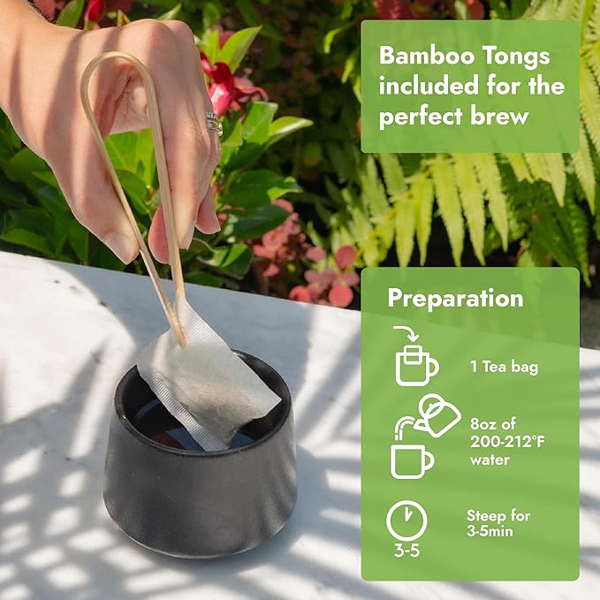 - IN THE BAG Vital Bloom tea comes in resealable #7-recycleable packages, containing 120 plant-based, bleach-free tea bags designed for convenience and sustainability. Included are bamboo tongs for pulling the tea bag out of the brewing cup after the ideal steeping time.