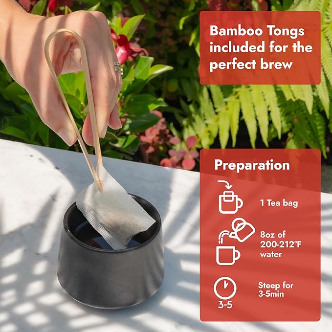 - IN THE BAG Vital Bloom tea comes in resealable #7-recycleable packages, containing 120 plant-based, bleach-free tea bags designed for convenience and sustainability. Included are bamboo tongs for pulling the tea bag out of the brewing cup after the ideal steeping time.
