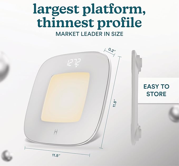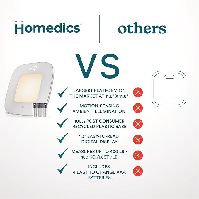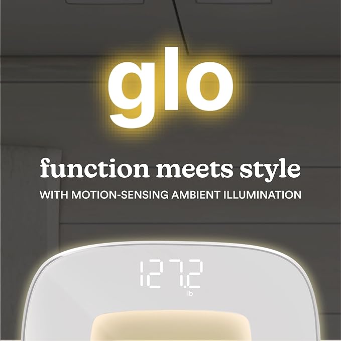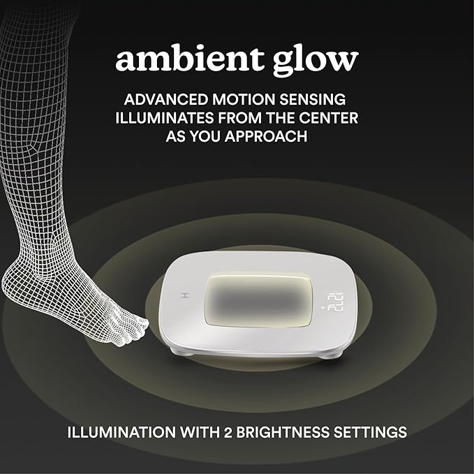 Homedics Digital Bathroom Scale, Motion-Sensing Ambient Center Illumination, Sleek Tempered Glass, High-Precision Weight Measurement Up to 400 lbs, Sustainable Design, White