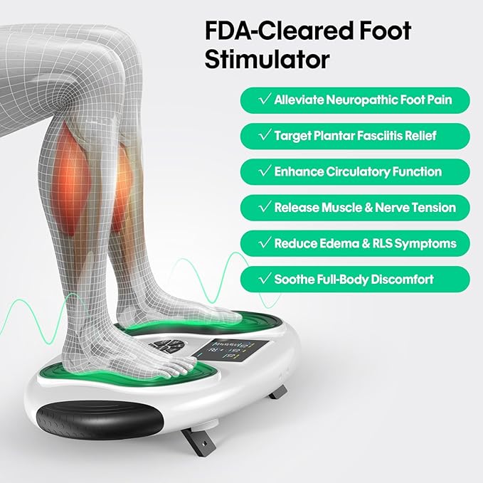 - 【EMS, TENS, EPT & NMES+ Therapies】This 4-in-1 medical-grade massager combines EMS, TENS, EPT, and NMES+ therapies to effectively relieve pain, improve circulation, reduce stiffness and numbness, and promote tissue recovery while strengthening foot muscles. Note: This device uses gentle microcurrent stimulation—not mechanical vibration—to activate muscles and nerves, providing a targeted therapy experience without physical movement.