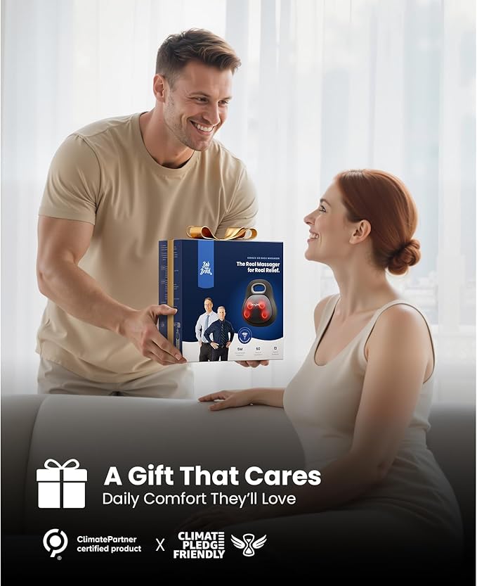 - Compact & Ultra-Quiet: Weighing only 2.9 lbs (1.33kg) and measuring 12.6" x 12.6" x 4.9", electric bob and brad back massager with heat fits neatly in drawer, next to sofa, or on a shelf. The integrated handle and quick-attach straps secure it firmly to office chairs or living room seating. Operating below 45dB—quieter than a whisper—it delivers calm, focused relief during work, video calls, or while reading or watching TV at home, without disturbing those around you.