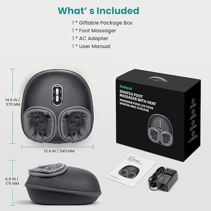 Nekteck Shiatsu Foot Massager Machine and Heat, Air Compression with Deep Kneading Therapy, Relax for Home or Office (Large Size)