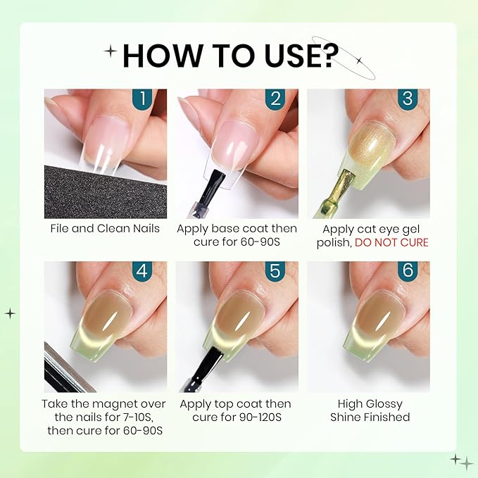 - Upgrade Formula: The upgraded cat eye gel nail polish is made of 9 toxin-free ingredients. It can last over 28 days with the correct application. Ensure a hassle-free and enjoyable manicure
