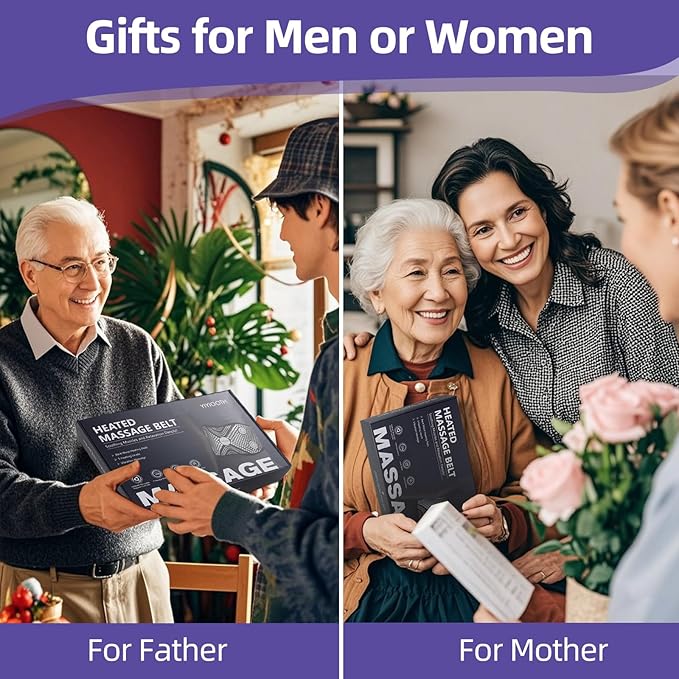 - 【Universal Size + Good Gift Choice】The red light back massager fits 27-50 inches waist circumference universal belt for all people who want relaxing and all ages, so the back massager is a good choice for Father's Day, Mother's Day, Thanksgiving, Christmas, Birthday, and other kinds of holiday gifts for fathers, mothers, and friends. If you have any questions about the product you can ask us, we are famous for our excellent customer service and are committed to solving users' needs