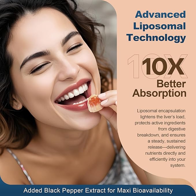 - LIPOSOMAL LIQUID-FILLED GUMMIES -- Fisetin, a natural flavonoid, supports cellular health but faces low bioavailability. Our liposomal fisetin formula solves this with 10X higher absorption. Enhanced with unique GummieJel Technology, the fisetin complex is encapsulated in the center, enhancing its stability and potency. The double-layer design with delivery system maximizes nutrient delivery to your cells. Black pepper extract further boosts bioavailability.