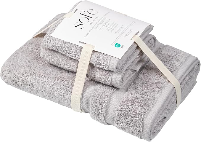 SOFE H&L | Olea Luxury Turkish Cotton Bath Towels Set of 3 : 1 Bath Towel, 1 Hand Towel, 1 Wash Cloths, Cool Gray |Thick, Premium, Soft, Durable, Absorbent - Hotel Quality Towel Sets for Bathroom
