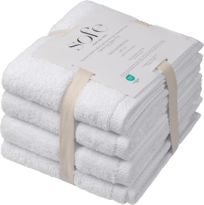 SOFE H&L | Olea Luxury Turkish Cotton Hand Towels Set of 4 White | Premium, Soft, Durable, Absorbent | Hotel Quality Plush Towels and Thick Towel Sets