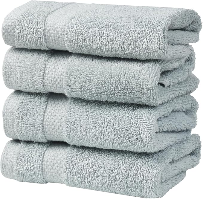 SOFE H&L | Olea Luxury Turkish Cotton Bath Towels Set of 4 : 4 Wash Cloths Light Blue | Premium, Soft, Durable, Absorbent | Turkish Washcloths for Face