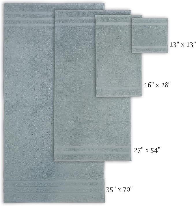 - OLEA Set of 3 includes: (1) 27 x 54-inch Bath Towels , (1) 16 x 28-inch Hand Towels , (1) 13 x 13-inch Washcloths