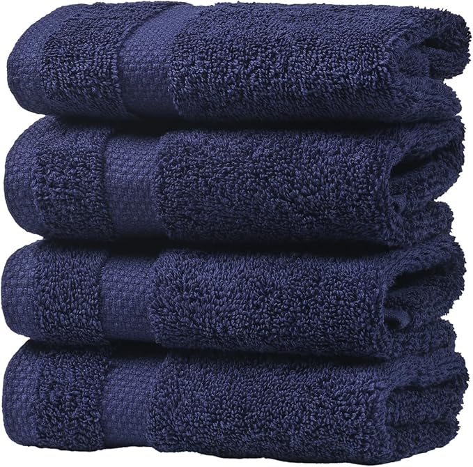 SOFE H&L | Olea Towel Set | 100% Cotton Premium Turkish Towels for Bathroom | Soft, Absorbent, Durable (Navy, Set of 4 - Washcloth)