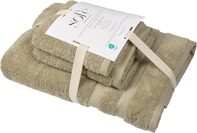 SOFE H&L | Olea Luxury Turkish Cotton Bath Towels Set of 3 : 1 Bath Towel, 1 Hand Towel, 1 Wash Cloths, Green |Thick, Premium, Soft, Durable, Absorbent - Hotel Quality Towel Sets for Bathroom