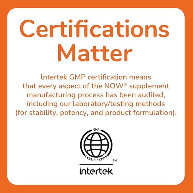 - GMP Quality Assured: NPA A-rated GMP certification means that every aspect of the NOW manufacturing process has been examined, including our laboratory/testing methods (for stability, potency, and product formulation).