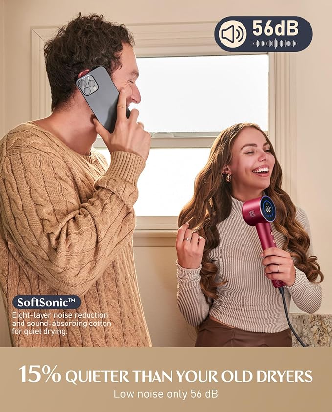 - 80% FASTER DRYING: SonicDry Tech with 110,000 RPM brushless motor delivers 65 m/s airflow that dries hair effortlessly