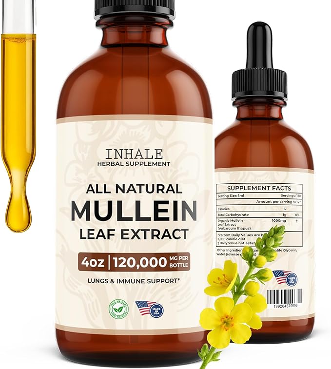 - Premium Herbal Mullein Extract – Made from the finest mullein leaves and flowers, this high-potency formula supports long-term lung health, immune function, and overall well-being.