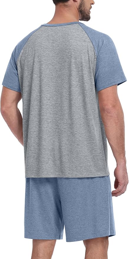 Mens Pajama Set Summer Pjs Sleepwear Lightweight Short Sleeve Pjs Soft Comfy Sleep Set With Pocket