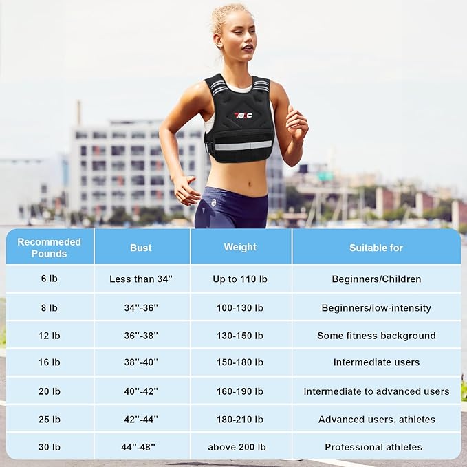 - ADJUSTABLE WEIGHT DESIGN: This adjustable weight vest from TB3C is available in weights ranging from 4lbs to 32lbs. meet different training needs.