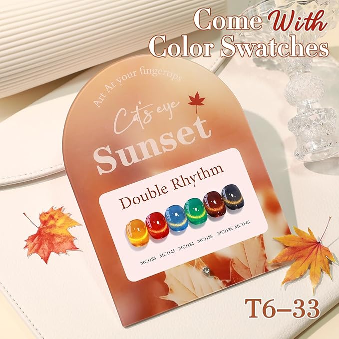 - 6 Pcs Same Color Same Bottle Gel Polish: 6pcs 15ml cat eye gel polish for all season, will come with color swatches.These gel polish kit need to be cured under UV or LED Lamp for 60-120s. Must apply with Base Gel and Top Coat. Please shake the bottle or warm it with hot water before use, to acheive a better effect.