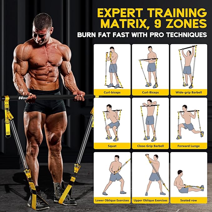 - Premium Heavy-Duty Pilates Equipment: Built to last with industrial-grade materials, our Portable Pilates Bar Kit with Resistance Bands features 3 steel-core pipes wrapped in soft 5mm foam for a secure, comfortable grip. Perfect for intense workouts, this professional adjustable heavy-duty squat workout equipment for men delivers unmatched durability for serious fitness enthusiasts.