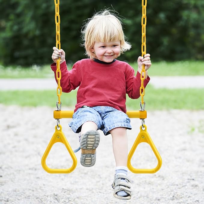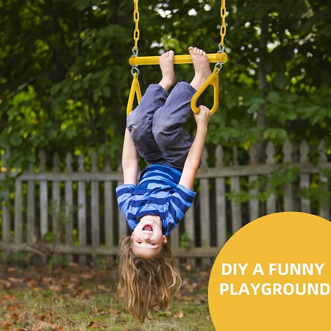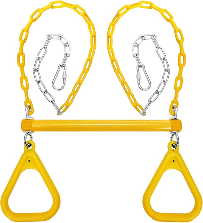 Trapeze Swing Bar Rings, 17" Heavy Duty Plastic Coated Chains Swing Set Chain with Locking, Trapeze Monkey Bar Accessories for Home Gym, Strength Training, Fitness