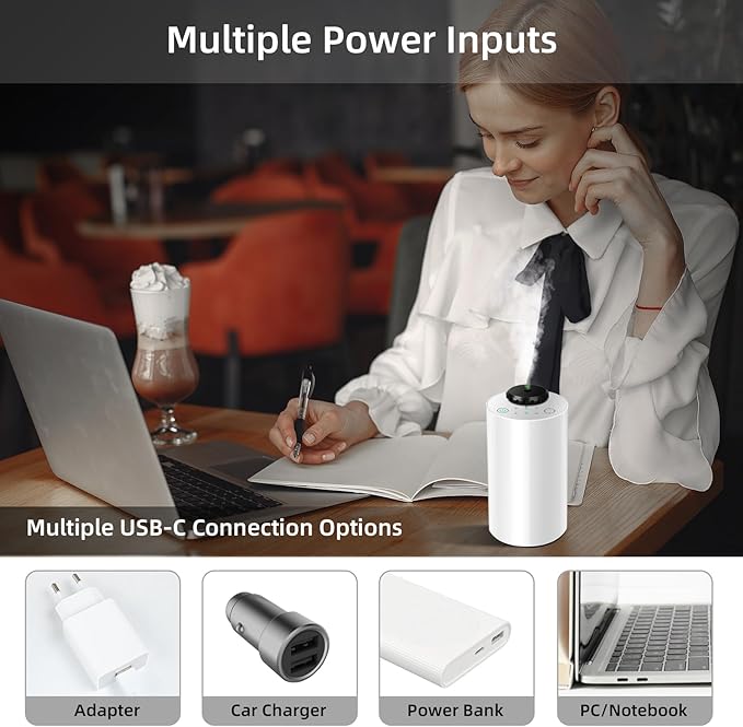 - 【Portable & Versatile — Car, Home, Office, Travel】Smaller than a soda can, this waterless diffuser fits in car cup holders, on desks, or in bags. A cordless, automatic mini device that brings spa-like freshness to your desk, soothing lavender to your bedroom, or an energizing scent on road trips—360° fragrance anywhere
