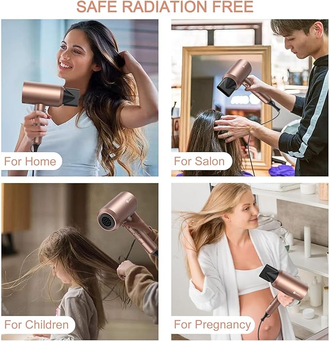 slopehill Professional Ionic Hair Dryer, Powerful 1800W Fast Drying Low Noise Blow Dryer with 2 Concentrator Nozzle 1 Diffuser Attachments for Home Salon Travel (Mocha Mousse)