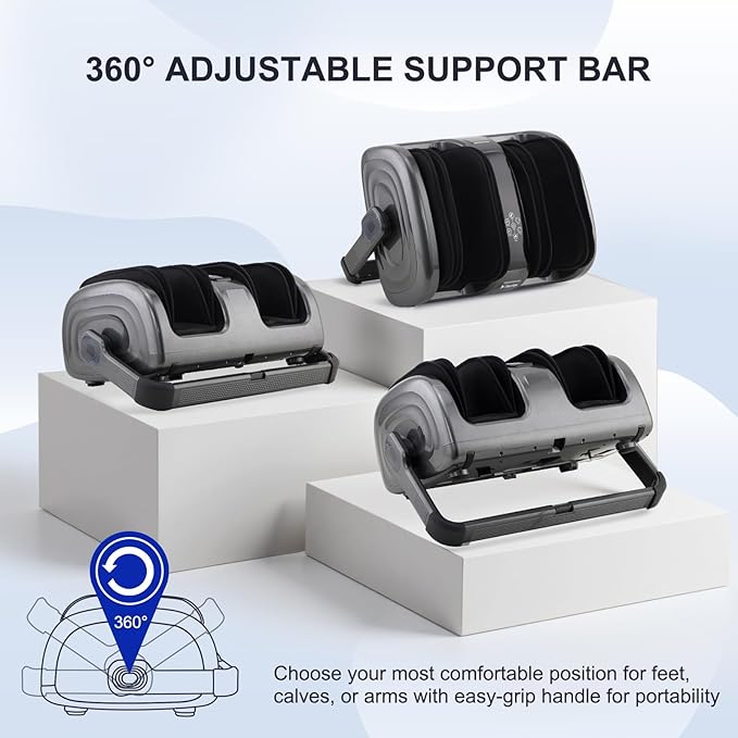 - 【360°Adjustable Handle】The foot and calf massager with heat has a 360° adjustable handle which can provide a deep kneading shiatsu massage at the optimum comfort angle, letting you massage your feet, calves, and arms while you are seated, or lying on your back.You can enjoy a massage session at home, in the office, or anywhere you want.