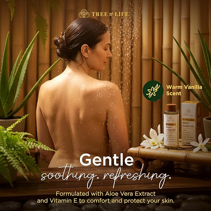 Tree of Life Vanilla Body Wash Gel - Moisturizing Shower Gel with Jojoba Oil and Shea Butter Hydrating Body Wash for Sensitive Skin and All Skin Types, 16.9 fl oz