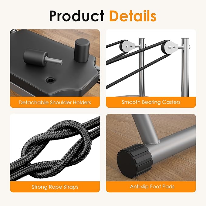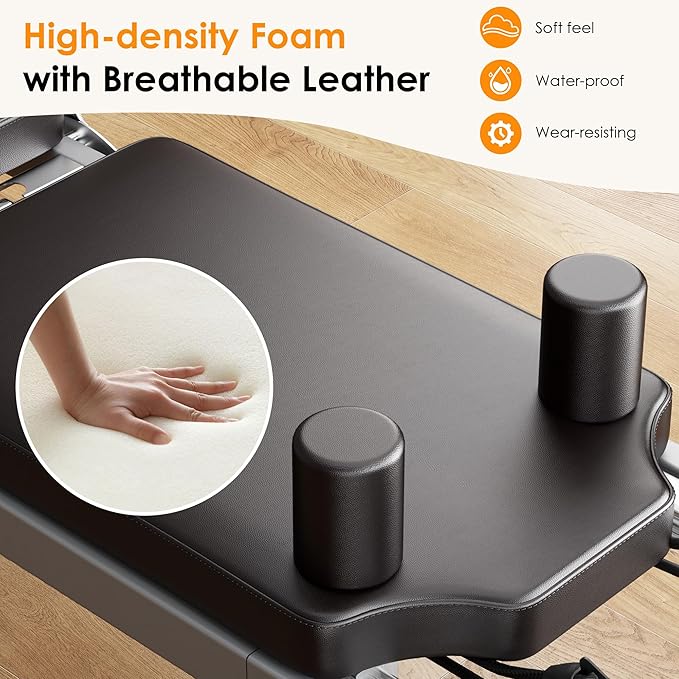 - Space-Saving Foldable Design: Ideal for homes or studios with limited space, this foldable Pilates reformer features a compact design and built-in wheels for easy storage and mobility. Store it effortlessly and move it around your home without hassle.