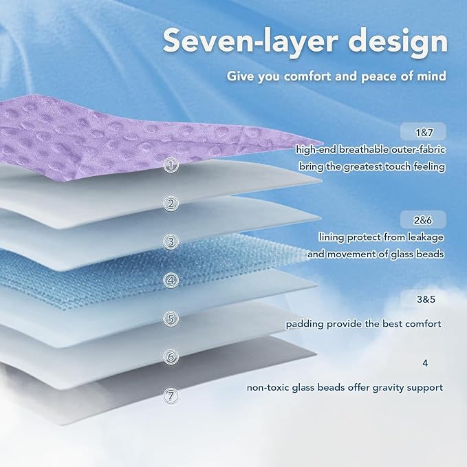 - 【Precise positioning technology of glass beads】- We have observed that for weighted blankets, the biggest problem is that as the beads move in the blanket, the weight becomes more and more uneven. To solve this problem, we designed a professional tool to fill glass beads. This tool makes the beads evenly distributed in the blanket. At the same time, we use high-strength sewing thread, which is very strong to ensure that the beads will not enter another area from one area during use of blanket.