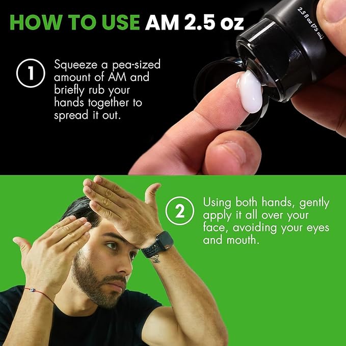 - How to Use: (AM 2.5 oz) To apply our morning facial moisturizer, make sure your face is clean and dry. Then take a pea-sized amount and briefly rub your hands together to spread it out. Use both hands to gently apply it all over your face, avoiding your eyes and mouth. (PM 2 oz) Before going to bed and after washing your face, massage a pea-sized amount of moisturizer into your entire face and neck in gentle, circular motions.