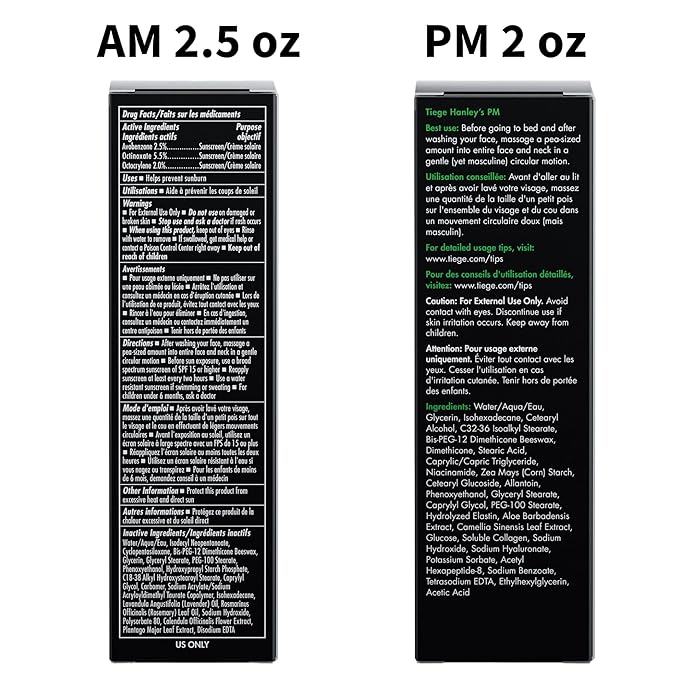 - All-in-One Morning Moisturizer (AM 2.5 oz): Start your morning with Tiege Hanley’s AM morning facial moisturizer. Our high-quality moisturizer is formulated with SPF 20 to be used every morning after washing your face. It hydrates the skin, regulates oil production, and provides necessary sun protection. Our morning moisturizer is suitable for all skin types, with a gentle formula that’s especially kind to sensitive skin. 2.5 oz.