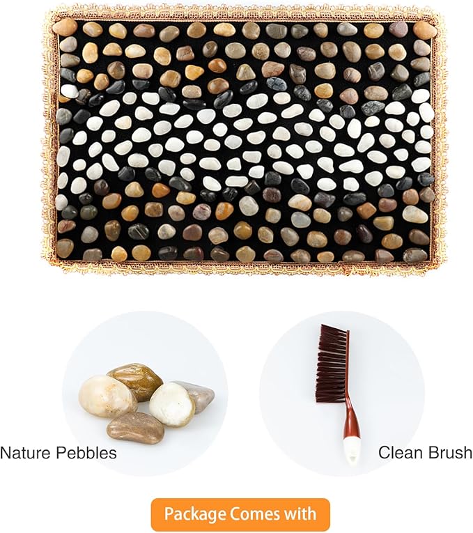- Material: Featuring smooth pebbles embedded in a fabric mat with decorative lace, all pebbles are well secured to the flexible mat for a relaxed massage experience
