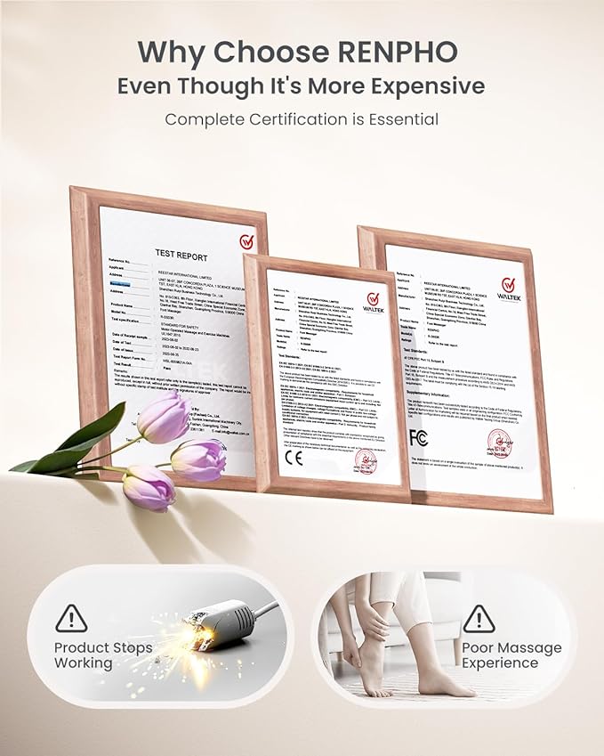 - Superior, Reliable Quality - RENPHO foot massager machine has been tested and certified by a number of professional organizations. Our design team has solved the common failures of foot massager in the market, such as stopping after a period of use and abnormal foot massage function