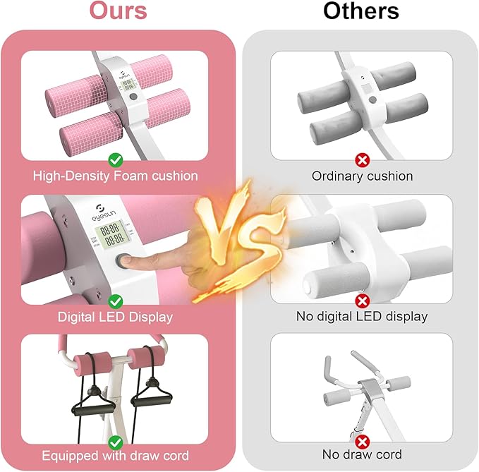 - Why us? The EYESUN AB workout machine is easy to assemble and features a compact design perfect for home gyms with limited space. Its thick sponge padding on the knees and elbows ensures enhanced comfort during workouts, while high-quality silent rollers provide a smooth, quiet glide to keep you motivated throughout your fitness routine.