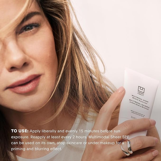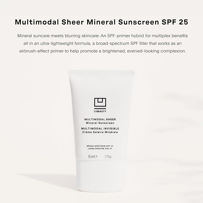 U Beauty Multimodal Sheer Facial Mineral Sunscreen SPF 25 with Non-Nano Zinc Oxide SPF Filter, plus Clary Sage and Pongamia Pinnata Seed Extracts for Brighter-Looking Skin with an Airbrush Finish