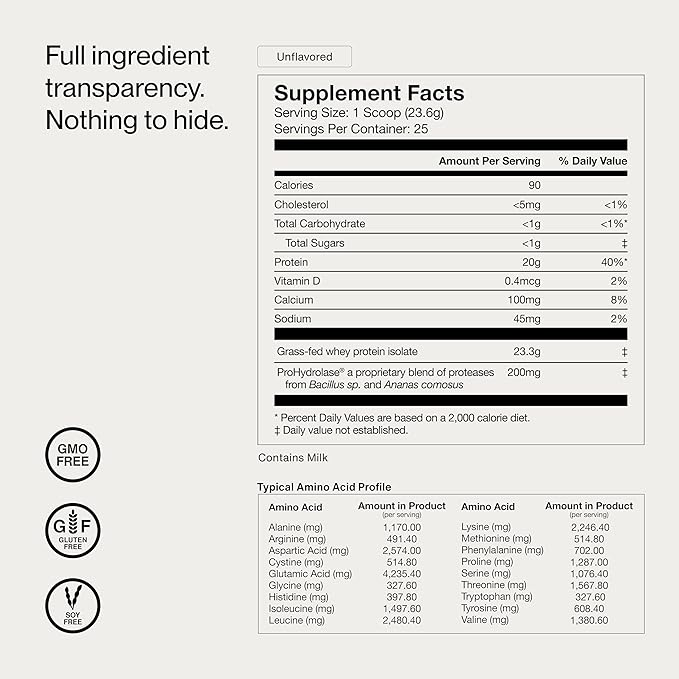 Momentous Essential Grass-Fed Whey Protein Powder - 20 g Whey Isolate Protein - NSF Certified for Sport - Gluten-Free - 24 Servings for Essential Everyday Use - Unflavored - Package May Vary