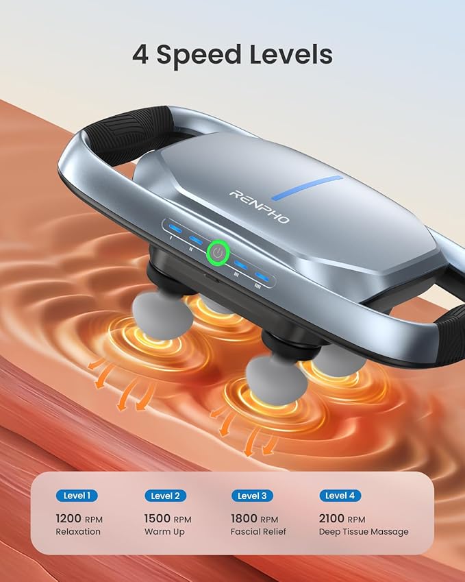 - Customizable Intensity: Choose from 4 speed settings (1200-2100 RPM) to match your needs with a massager, from gentle to intense deep tissue therapy