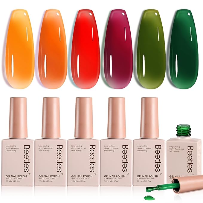 - 【Fashion Jelly Gel Nail Kit】Beetles have put together the top 6 trendiest new colors of fall gel nail polish for the year 2025! Designed with trendiest colors for a stylish, modern fall manicure! This transparent fall color jelly sheer gel is perfect for nail lovers with different skin tones. These jelly gel polish set creates versatile styles like French and swirl nails, flattering all skin tones. Color Number: f891-f892-f893-f894-f895-f896