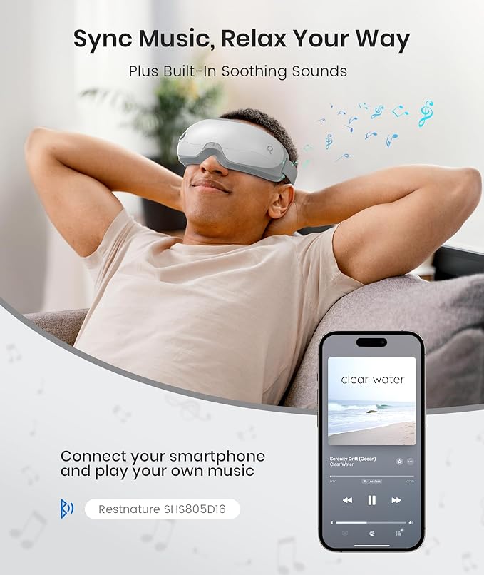 - 【Your Mood, Your Massage】Customize your heated eye mask experience: 107°F cozy warmth or 113°F deep relief. Sync with calming playlists or built-in soundscapes (ocean/piano/birds). A birthday gifts for women favorite – pair this eye massager with wine & candles for an instant spa night.