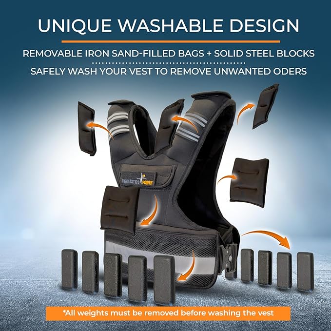 - UNIQUE WASHABLE DESIGN - Each vest has removable solid steel & iron sand-filled bags that allows you to safely wash your vest after long and sweaty workout sessions.