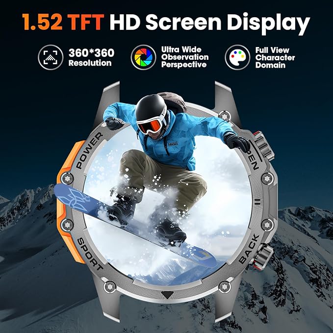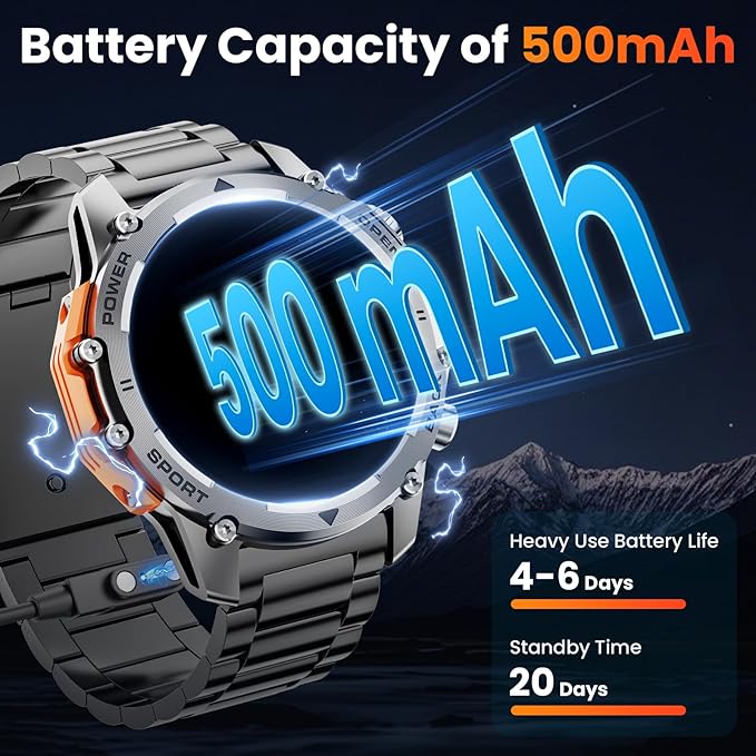 - 🏆【Tough Guy Style Smart Watch, Built to Withstand the Wild】This military smart watch is designed with a rugged titanium bezel and stainless steel back, the smart watches for men case is meticulously polished and stitched with fine metal craftsmanship. The metal is cool and shiny to show the sense of power, and the sturdy bezel is scratch-resistant. The outdoor military smart watch passes strict military-grade tests and can easily face the harsh outdoor environment.