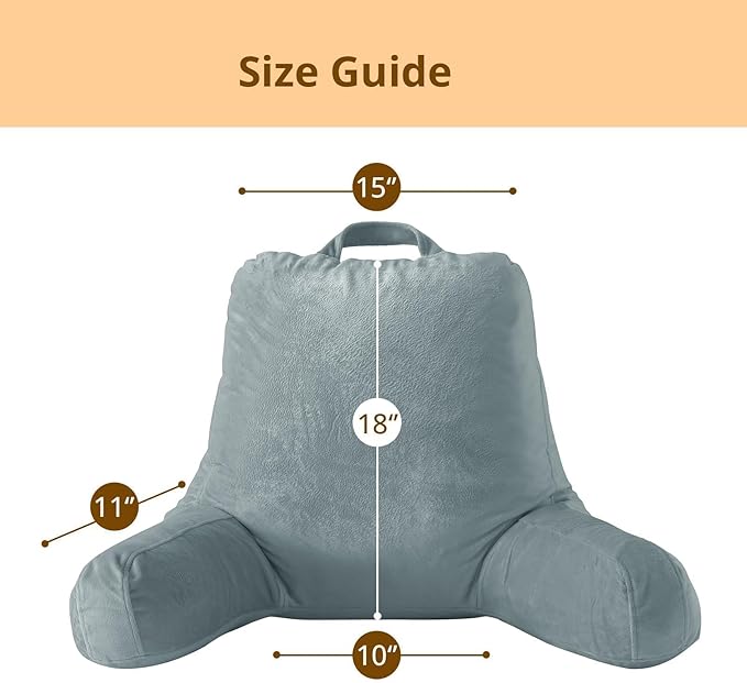 Sasttie Reading Pillow, Velvet Back Pillow for Bed Sitting Up, Adult Back-Rest Support Cushion with Arms for Sit Up on Couch, Sofa, and Floor, Dorm Essentials, Reading Accessories, Bluish Grey