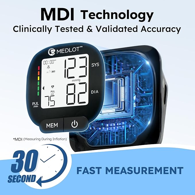 - Accurate & Fast Reading: BP monitor uses MDI (Measuring During Inflation) technology for faster and accurate readings; Clinically tested and validated, our home BP machine automatically measures your systolic, diastolic pressure and pulse in 30 seconds