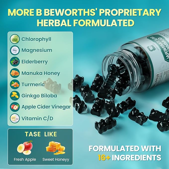 - 【 Natural, Vegan Ingredients】: MultiMineral sea moss chlorophyll gummies made with all-natural ingredients, Sea Moss, Black Seed Oil, Ashwagandha ginger, burdock root, and bladderwrack are crafted to provide trusted formulas and are gluten-free, non-GMO, and vegan-friendly. Daily Mineral & Gut Support – Crafted in a GMP-based facility, and the product undergoes third-party testing. Every batch is third-party tested for purity, potency, and safety.