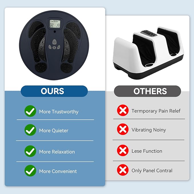 - 【TENS & EMS Technology】Experience advanced neuropathy relief with our foot massager. Combining EMS and TENS technologies boosts circulation and eases pain from neuropathy, arthritis, muscle spasms, swelling. Enjoy lasting relief for multiple conditions.