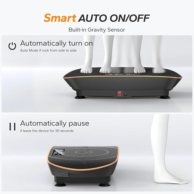 - 【Scientifically Designed Dual Modes】 The Vibration Plate Exercise Machine offers Manual + Auto modes. In Manual mode, adjust through 10 speed levels to find your ideal intensity. Auto mode intelligently senses your movement (step frequency) and auto-adjusts vibration speed for a smoother, more responsive workout.