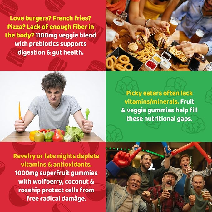 - 😋Delicious as a Snack: Our Fruits and Veggies Gummies supplement are made in a GMP-certified facility. Vegan, non-GMO, and free from gelatin, gluten, dairy, and artificial additives. Crafted with organic whole foods, they deliver fresh berry + grape flavor in every bite. Guilt-free, tasty, and perfect for a healthy lifestyle. Your satisfaction is our top priority - please contact us directly and we will provide you with responsive support and a worry-free experience.