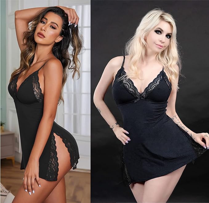 • ★ Unique Design:Lace chemise is design of dual side slits will perfect show your sexy leg curve.Hollowed back design makes you look very slim, sets off the shoulder and neck lines, shows your sexy butterfly bones, makes the whole back very sexy, and deeply attracts the attention of your lover.